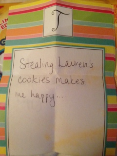 And here’s the best part…I opened the first package and there were two Oreos missing with a note inside that read