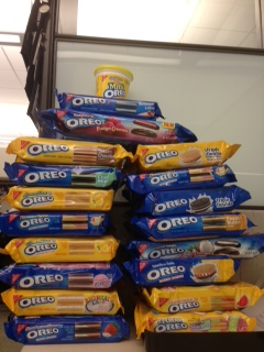 Oh and btw, I was away from my desk for a bit this afternoon and my teammate informed that I had a few “gawkers” come by and check out the Oreo mountain. I guess they had heard from some other people that I had a mountain of Oreos and they had to see it for themselves!